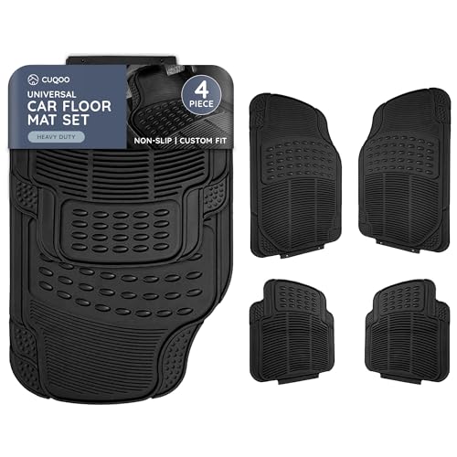 CUQOO 4 Piece Universal Rubber Car Mats - Heavy Duty, Non-Slip All Weather Mats for Cars, SUVs, Trucks & Vans, Waterproof, Easy to Clean, with Deep Grooved Design for Extra Durability