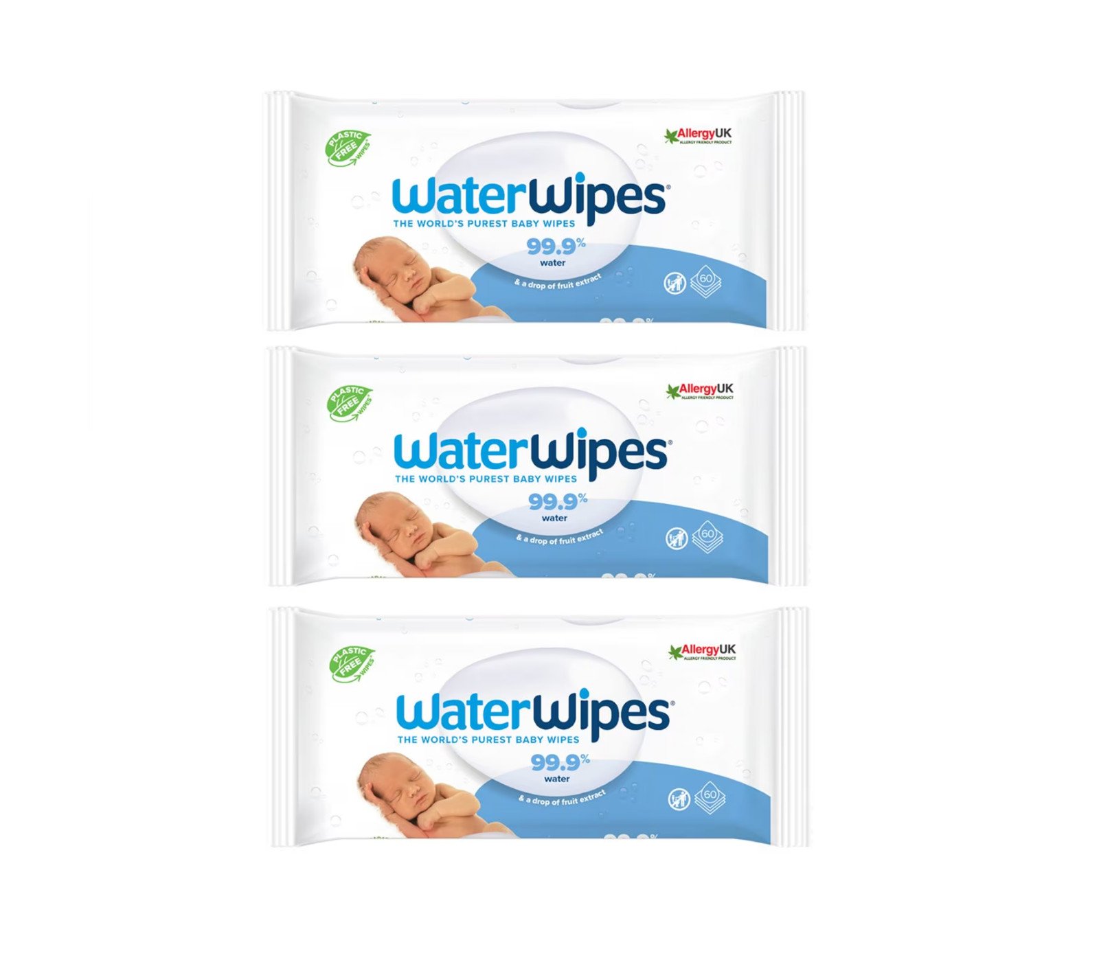WaterWipes Baby Wipes 3x60st
