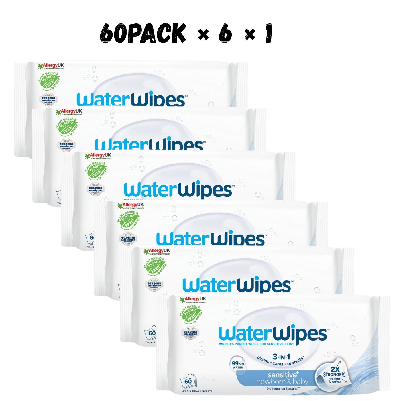 WaterWipes Sensitive+ Newborn & Baby Wipes,3-In-1 Cleans,Protect 60pack × 6 × 1