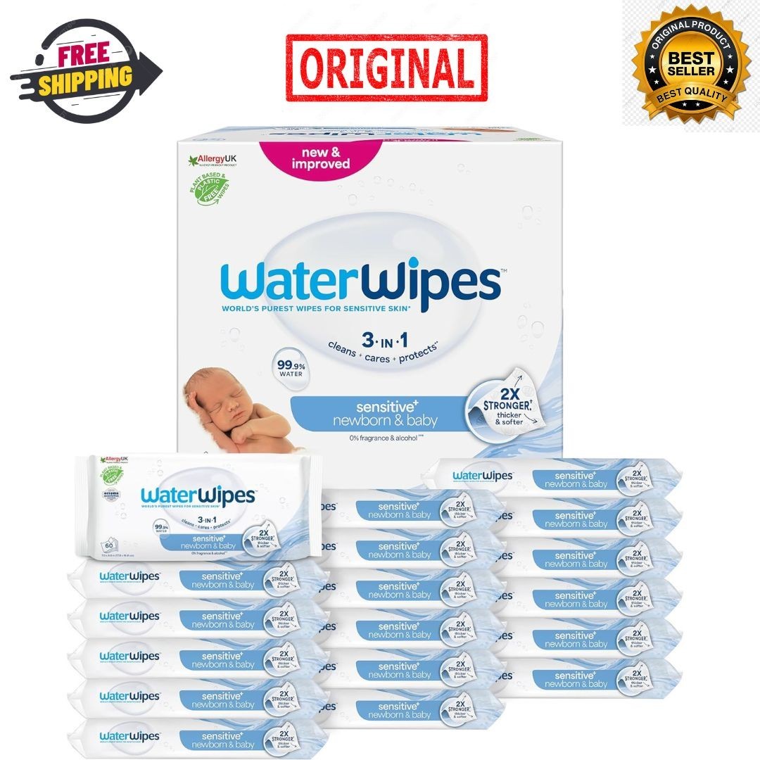 WaterWipes Sensitive+ Baby Wipes 1080ct (18x60) 99.9% Water Unscented 3-in-1,New