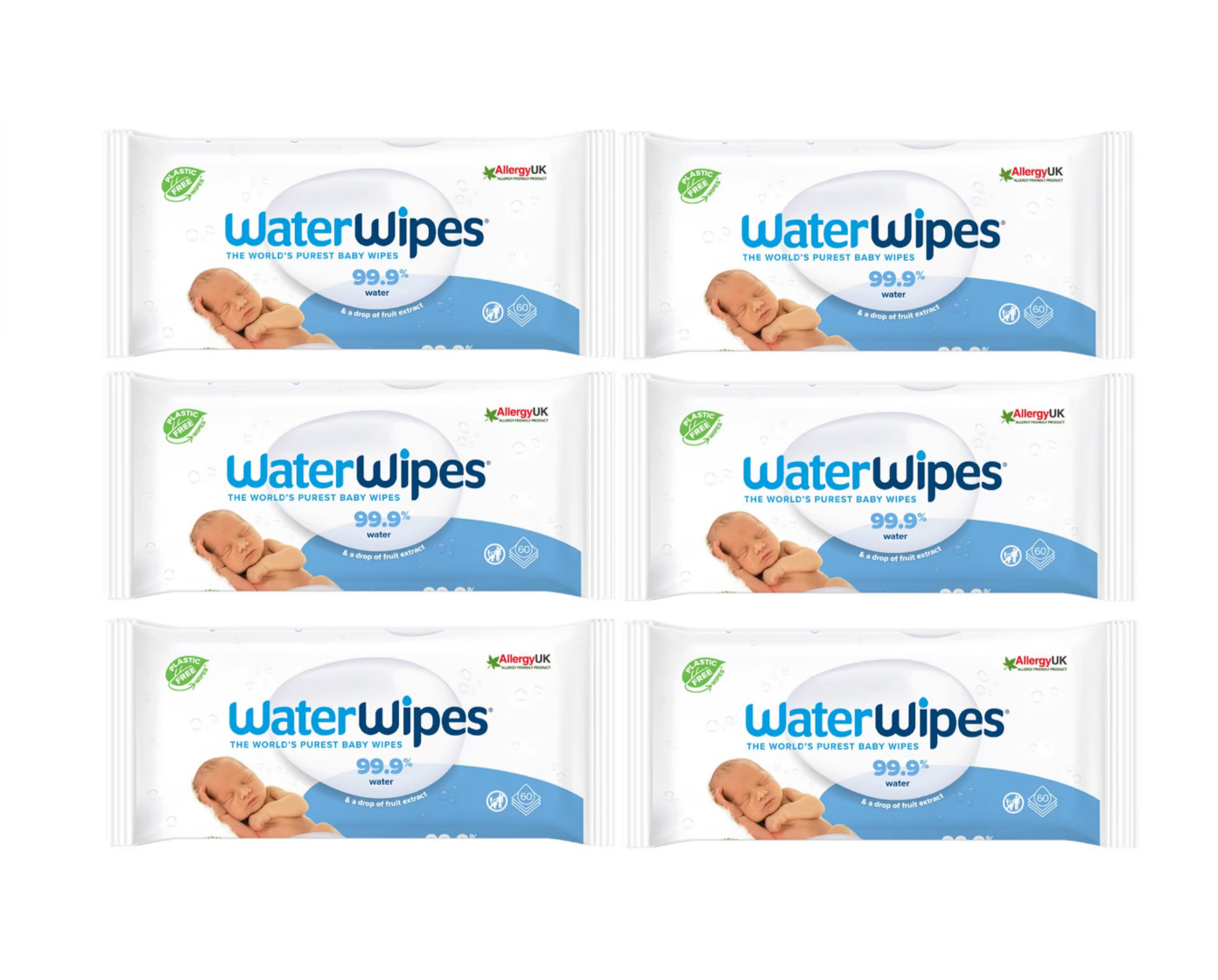 WaterWipes (6 Pack x 60 Wipes (360 Wipes)) | Chemical Free Baby