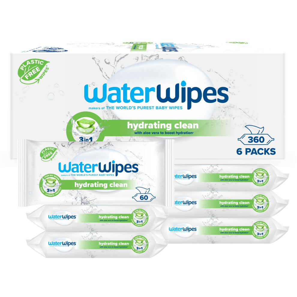 WaterWipes Hydrating Clean Baby Wipes, 360 Wipes (6 Packs), with 99% Water & Aloe Vera Extract, Wet Wipes for Face & Body