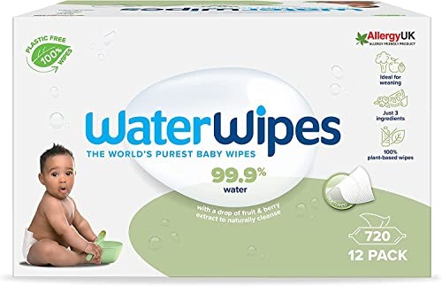 WaterWipes Baby Wipes Sensitive Weaning Biodegradable Unscented, 99.9% Water, 720 Wet Wipes (12 Packs Of 60 Wipes)