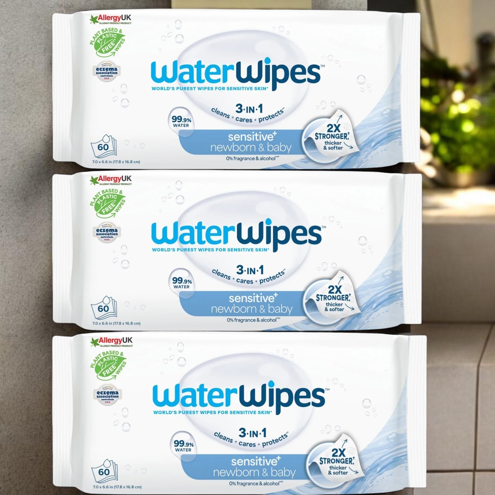 WaterWipes Sensitive+ Newborn & Baby Wipes, 360 Count (6 Packs), 3-In-1 Cleans,