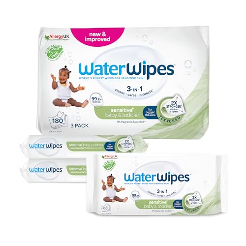 WaterWipes Sensitive+ Baby & Toddler Wipes, 180 Count (3 60 count (Pack of 3)