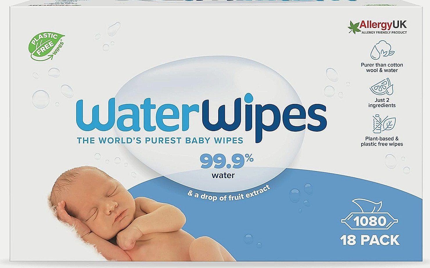 WaterWipes Plastic-Free Original Baby Wipes, 1080 Count 18 packs, 99.9% Water