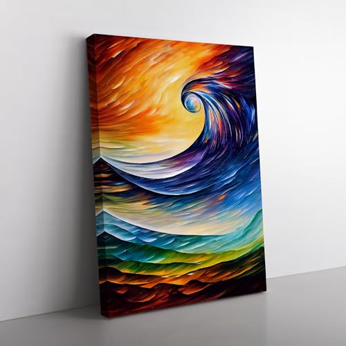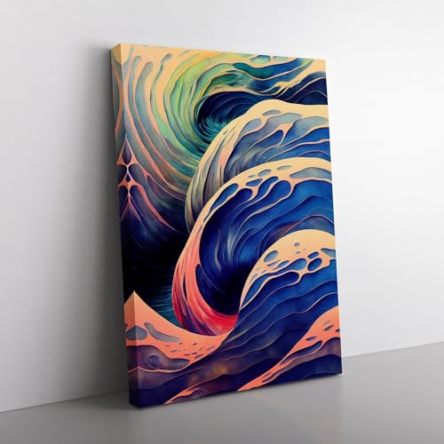 Ocean Wave In Colour No.4 Abstract Blue, Blue, Grey Canvas Print for Living Room Bedroom Home Office Décor, Wall Art Picture Ready to Hang, 30x20 Inch (76x50 cm)
