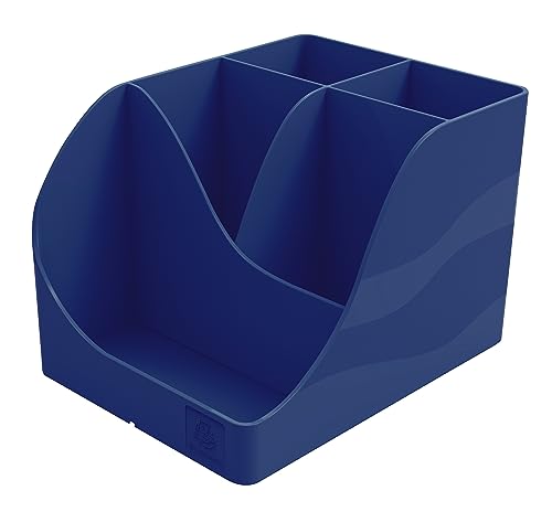 EXACOMPTA - Ref 69504D - Box of 4 Pen-Wave Bee Blue pencil pots Navy blue - 5 compartments - 4 high compartments for large utensils - 1 bottom compartment for small utensils