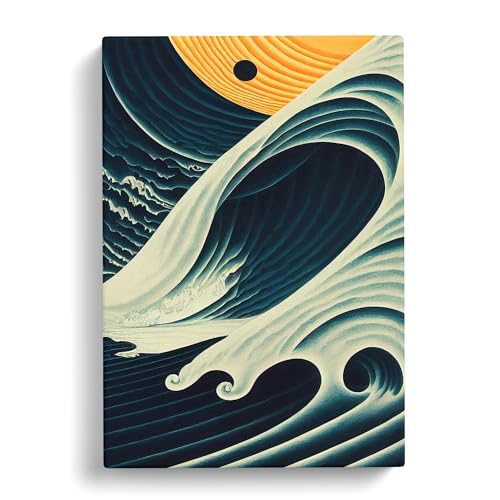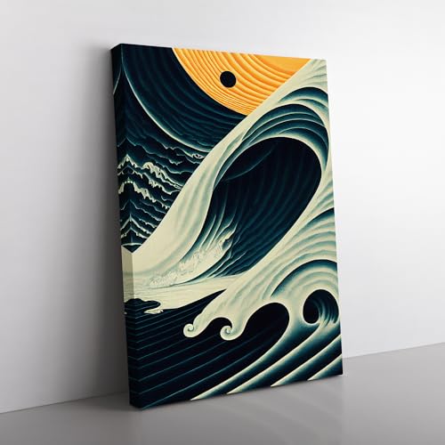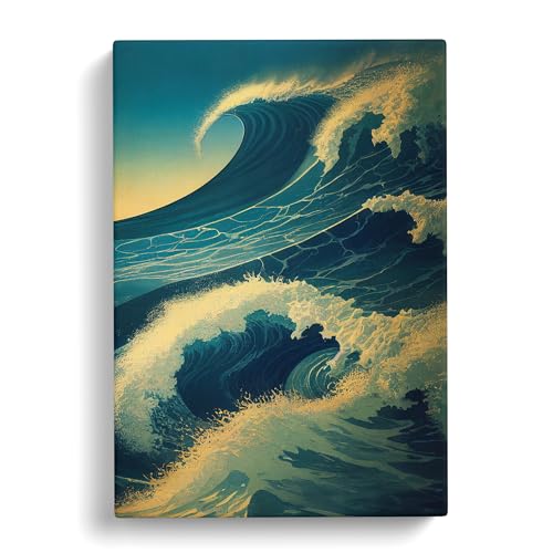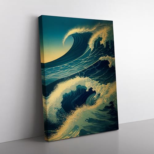 Vintage Ocean Wave Art No.4 Blue, Green, Teal Canvas Print for Living Room Bedroom Home Office Décor, Wall Art Picture Ready to Hang, 30x20 Inch (76x50 cm)