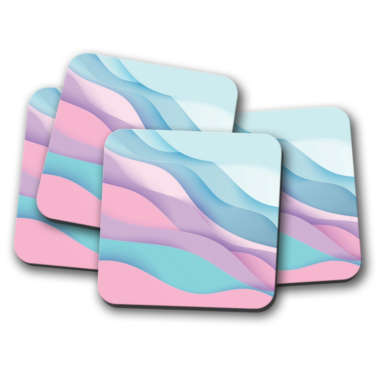 4 Set - Abstract Waves Coaster - Pastel Blue Pink Wave Girls Fun Mum Gift #16915