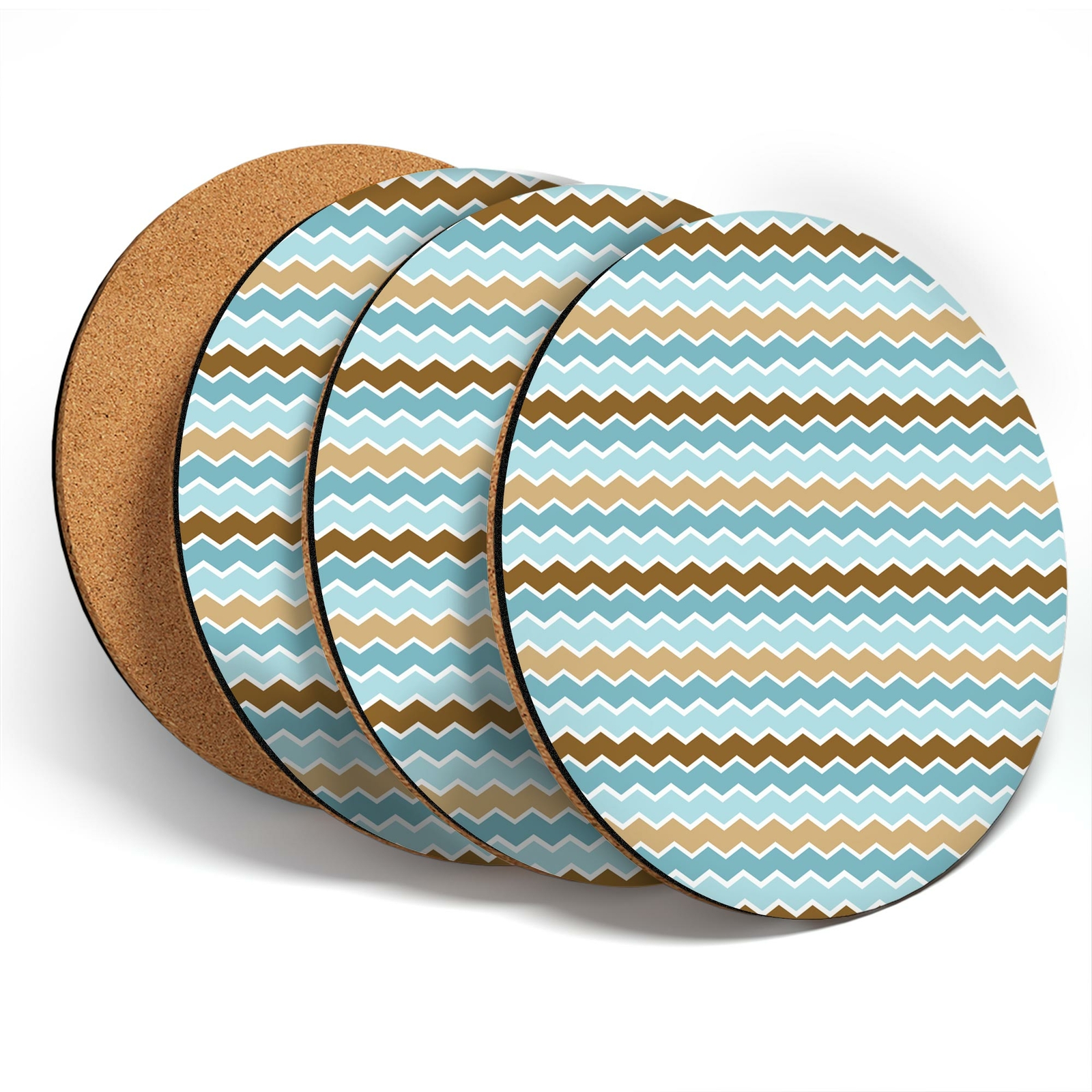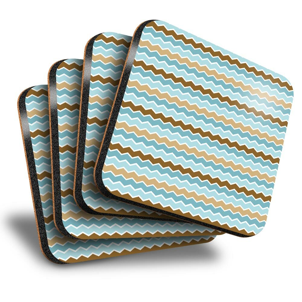 4 x Coasters - Blue Wave Pattern Boys Kids Cool #44401