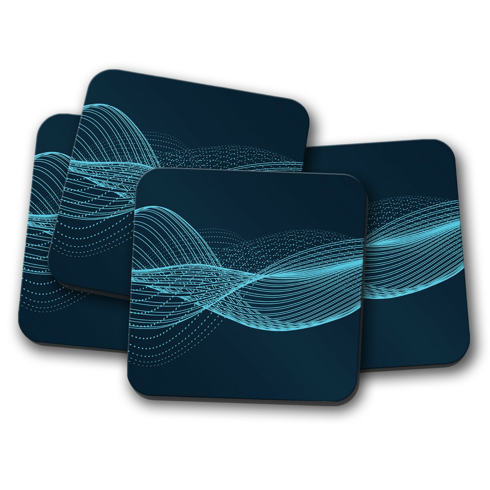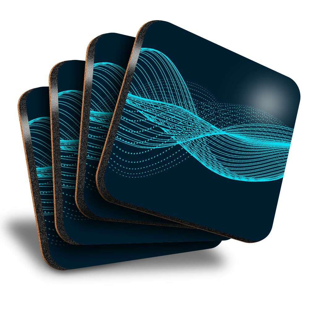 4 Set - Blue Sound Wave Music DJ Coasters - Kitchen Drinks Coaster Gift #12431