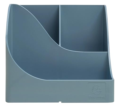 EXACOMPTA - SKU #69570D - 1 Pen Wave Autentik pen holder blue grey - with 5 compartments - 4 high compartments for large utensils and 1 bottom compartment for small utensils