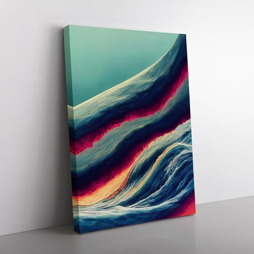 Ocean Wave Modern Art No.4 Abstract Blue, Green, Green Canvas Wall Art Print Ready to Hang, Framed Picture for Living Room Bedroom Home Office Décor, 76x50 cm (30x20 Inch)