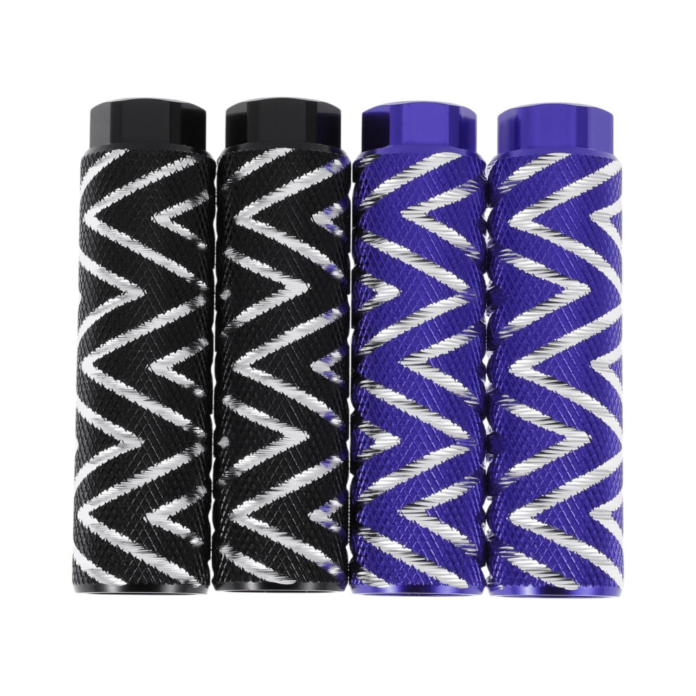 Partuto 4 Pcs Aluminum Alloy Anti-Skid Bike Pegs 100mm Length Wave Texture Bicycle Backseats Stands Cycling Foot Pegs 3/8 Inch Axles Black Blue
