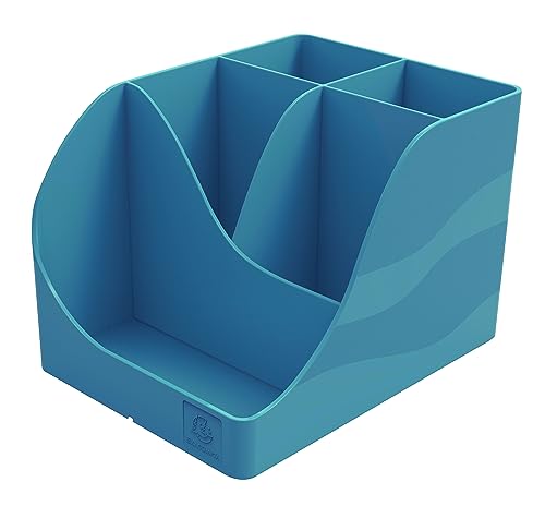 EXACOMPTA - Ref 69528D - Box of 4 Pen Wave Neo Deco pencil pots duck blue - 5 compartments - 4 high compartments for large utensils - 1 bottom compartment for small utensils