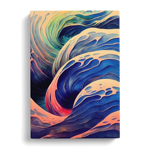 Ocean Wave Abstract No.4 Blue, Brown, Brown Canvas Print for Living Room Bedroom Home Office Décor, Wall Art Picture Ready to Hang, 30x20 Inch (76x50 cm)