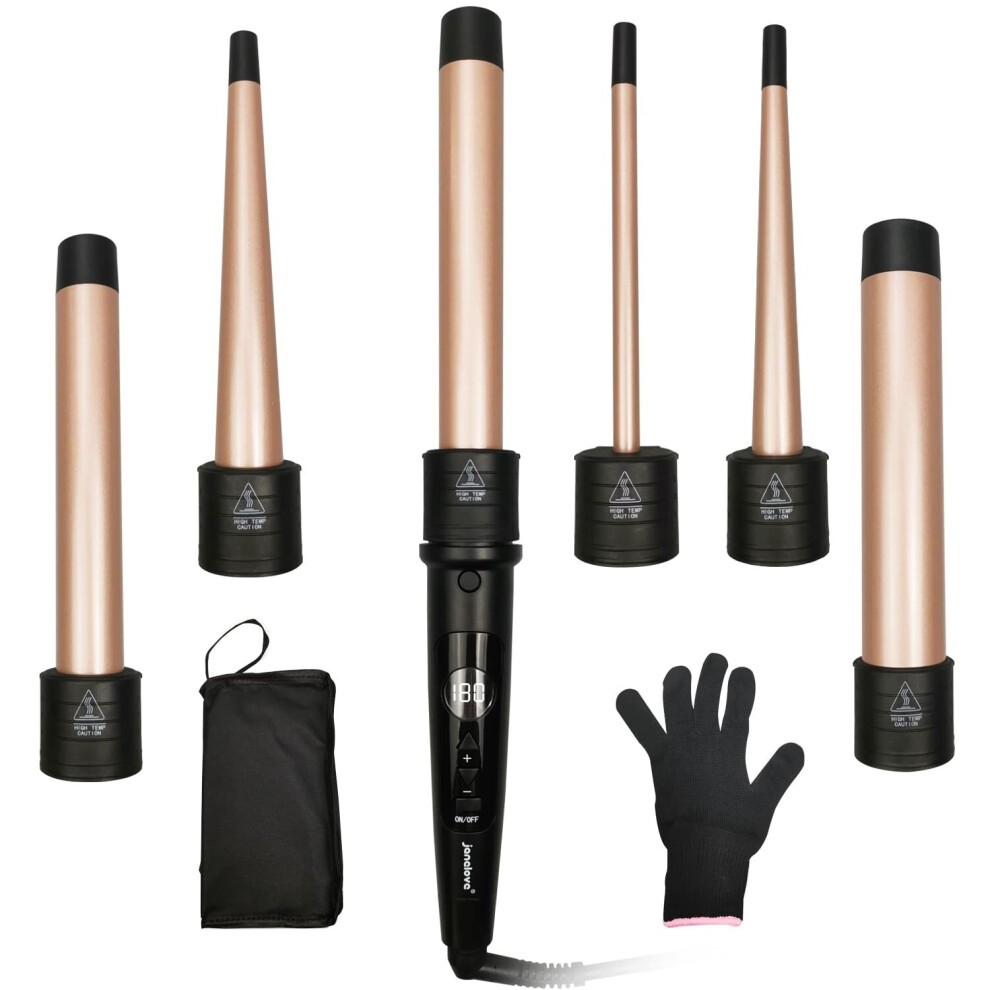 janelove Hair Curler, Curling Wand,6 in 1 Hair Iron Set for Long/Short Hair, with 5 Interchangeable Ceramic Barrel,Include Large/Small Hair Waver ,Hai