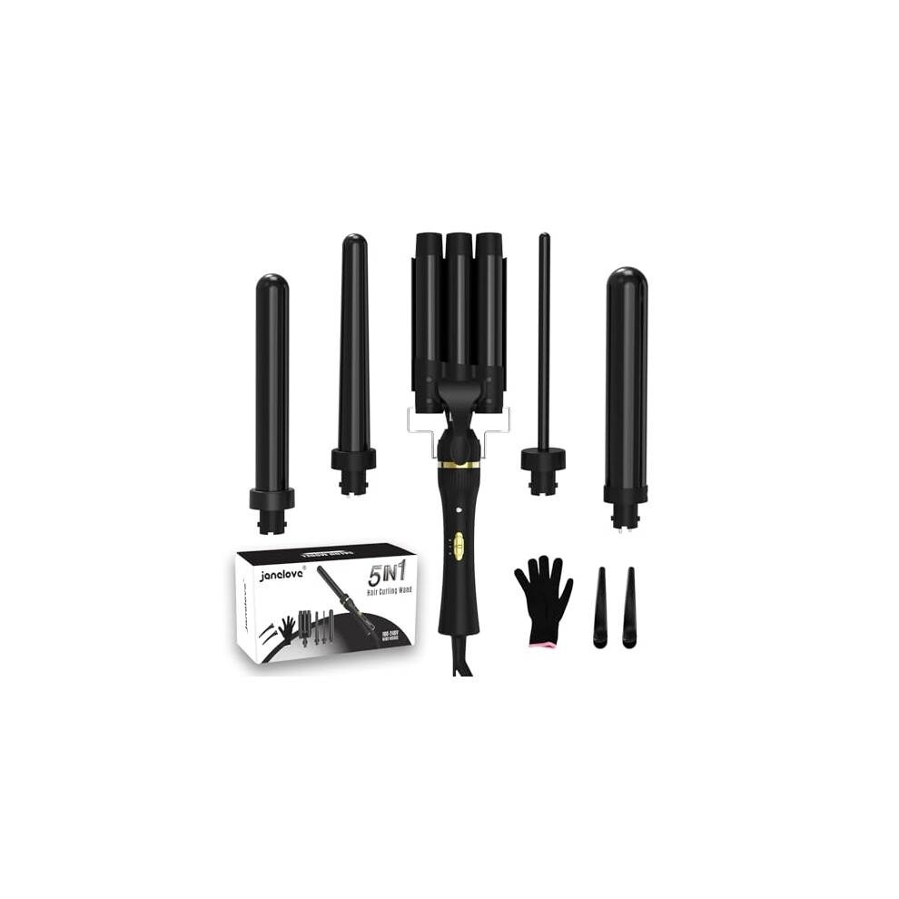 janelove Hair Curler 5 in 1 Curling Wand Set with 3 Barrel Hair Waver and 4 Interchangeable Ceramic Curling Iron 10-32mm for Long Medium Short Hair