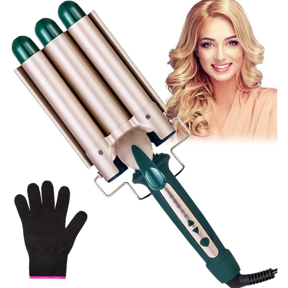 Hilifexll Hair Curler 22mm, 3 Barrel Waver for Long & Short Hair, Quick Heating, 2 Temperature Control, Mermaid Styling Tool with Heat-Resistant Gloves