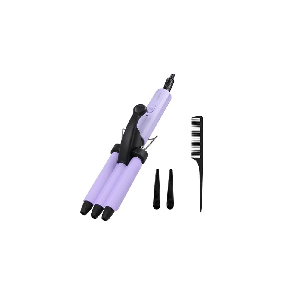 3 Barrels Mini Hair Waver for Short & Medium Hair, 13MM Curling Iron Curling Wand, 0.45lb Lightweight, Mini Size Hair Curler, Travel Friendly-Purple