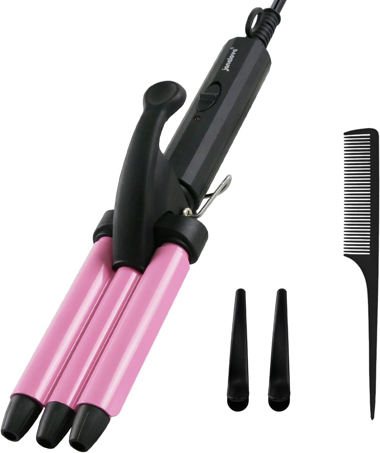 Three Barrel Curling Iron 25mm Pink Hair Waver, Adjustable Temperature for Long or Short Hair