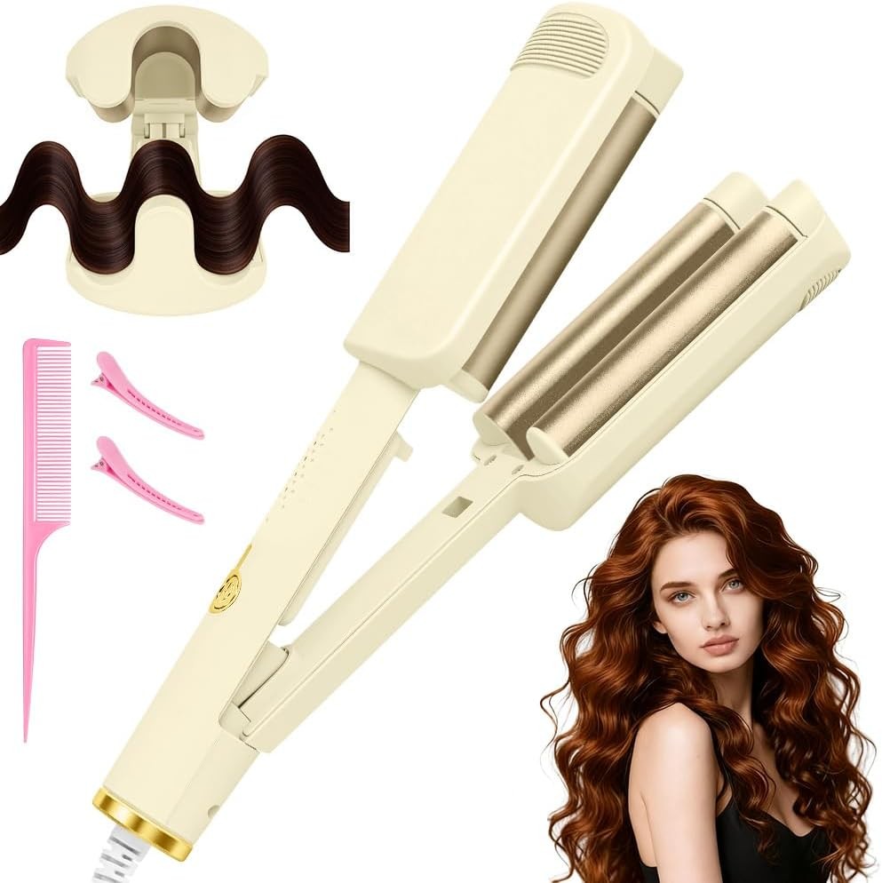 Three Barrel Hair Waver 25MM Big Wave Hair Curling Iron Wand with Two Speed Tem