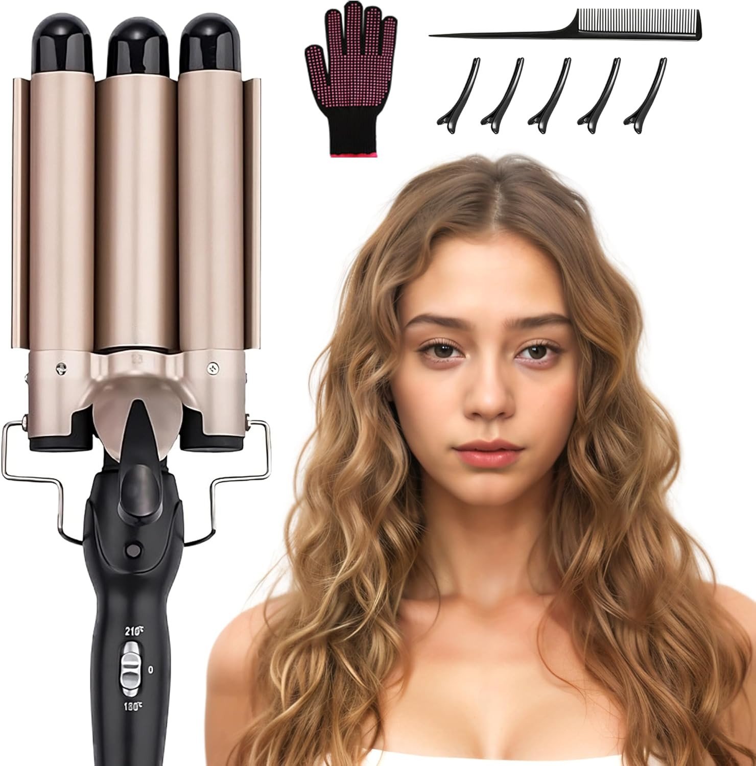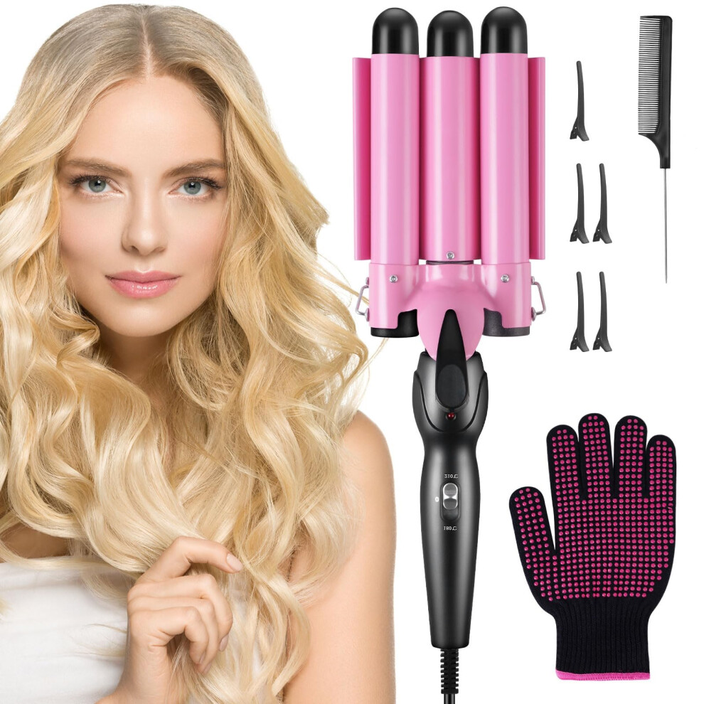 Hair Curler, 3 Barrels Curler Ceramic Curling Iron Wand Hair Wavers with Two Gea