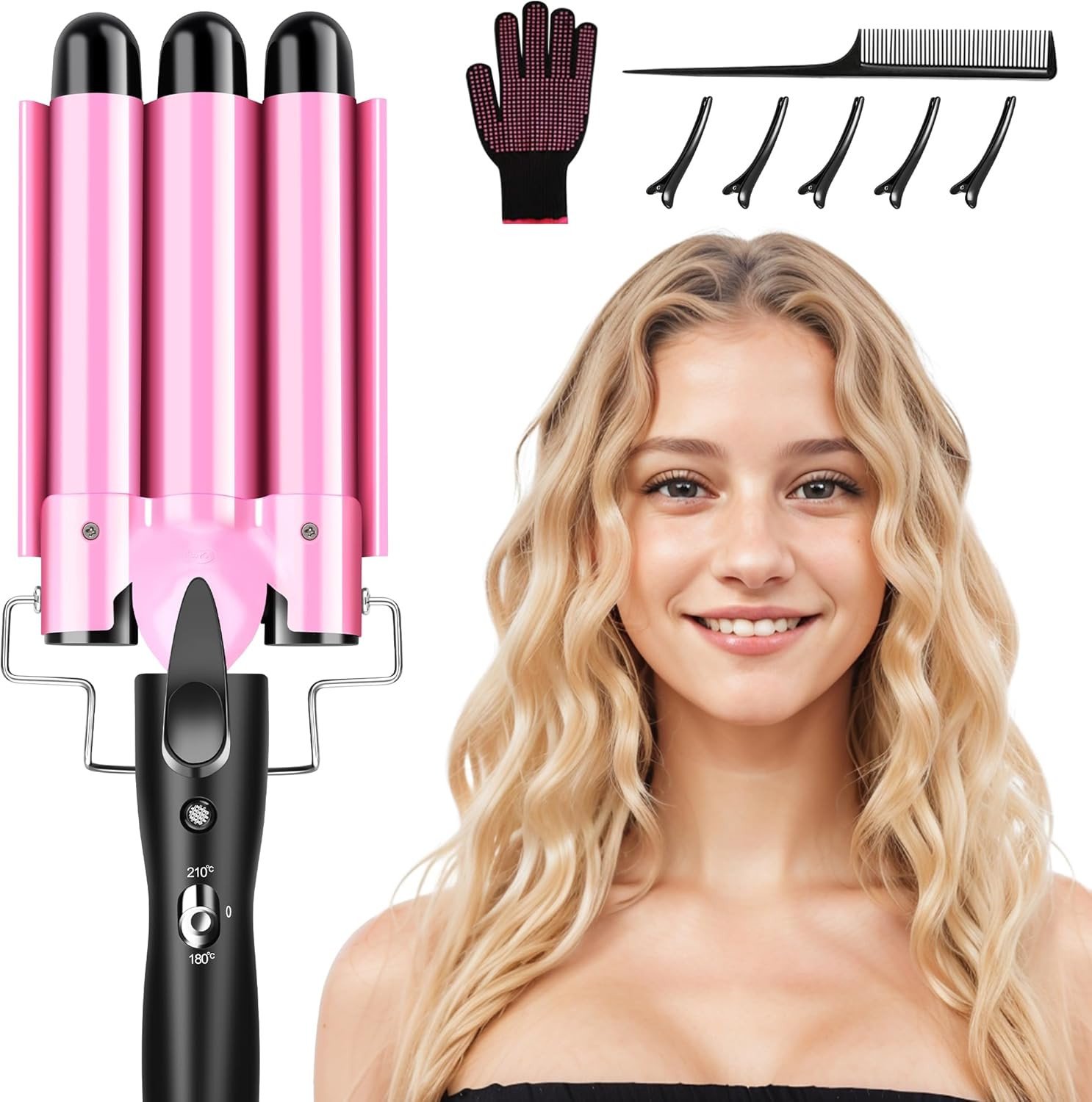 25mm Hair Waver, 3 Barrel Beach Wavers Curling Iron, Small 25mm, Rose Gold