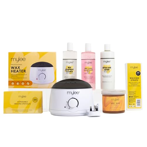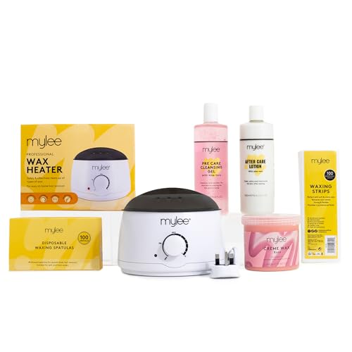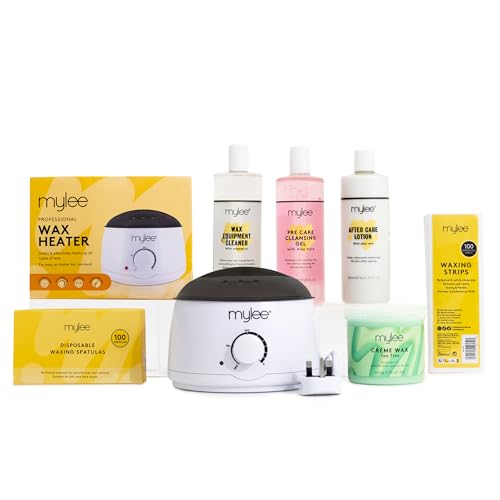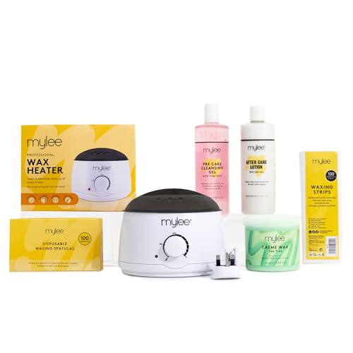 Mylee Complete Waxing Kit, Includes Salon Quality Wax Heater, Soft Cream Wax, Waxing Strips, Spatulas and Mylee Pre & After Care Lotion (Tea Tree)