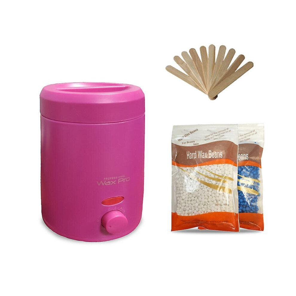 (Pink, EU Plug) Electric Wax Heater Hair Removal Wax Therapy Kit With Wax Beans And Stick