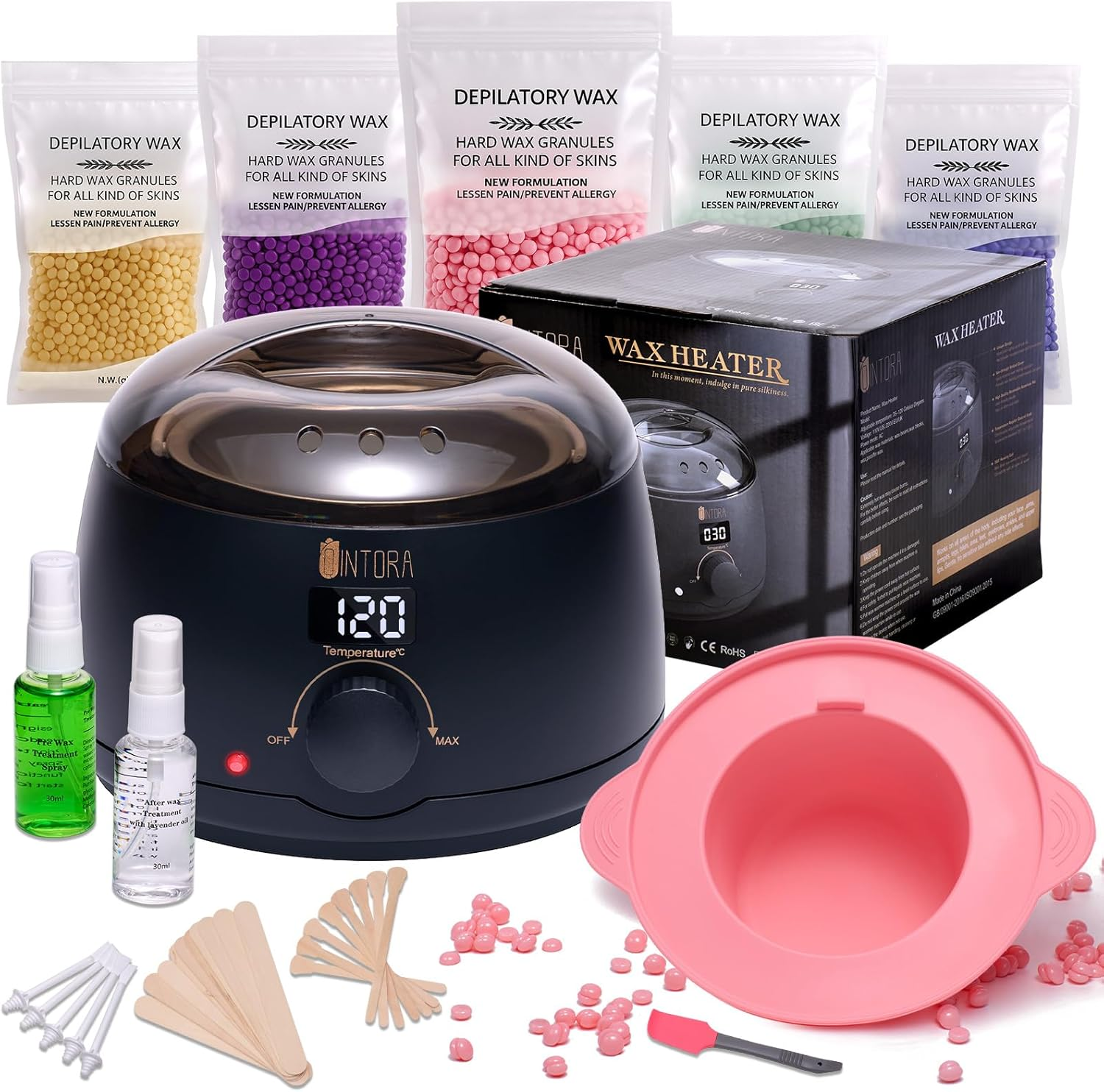 Waxing Kit, Wax Warmer, Wax Pot for Hair Removal: Wax Heater Kit for Waxing, 5 Packs Wax Beads and 30 Applicator Sticks, Painless Waxing Machine for Full Body
