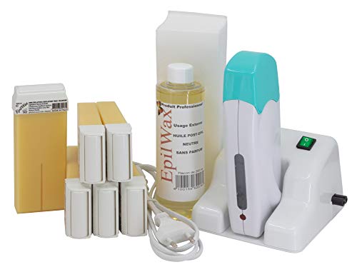EpilWax Complete Hair Removal Waxing Kit - With 12 Azulene Wax Roll-on Cartridges, Roll On Wax Heater, 100 Strips and Waxing Oil