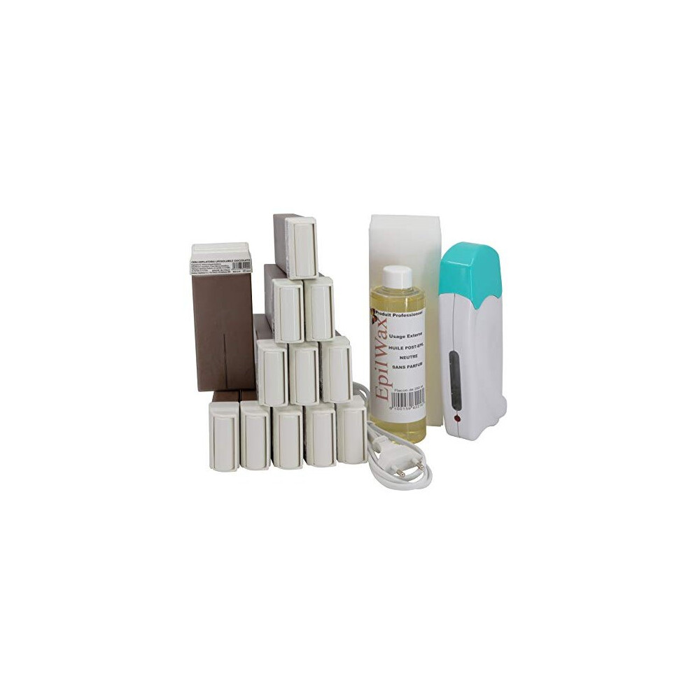 EpilWax Complete Hair Removal Waxing Kit - with 12 Chocolate Wax Roll-on Cartridges, Roll On Wax Heater, 100 Strips and Waxing Oil