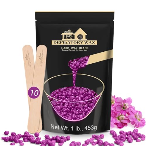 Lifestance Violet 450g Wax Beads, Coarse Hair Removal Formula, Hard Wax Beads for Brazilian Bikini - Legs - Underarm- Private Part, Waxing Beads with 10 Applicators for Wax Warmers