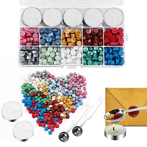 Wax Seal Stamp Kit 307 Pcs Wax Sealing Kit with 300 Octagon Sealing Wax Beads, 2 Wax Melting Spoons and 5 Tea Candles, Wax Seal Kit for Vintage Envelopes Letters DIY Crafts Gift Wedding Invitation