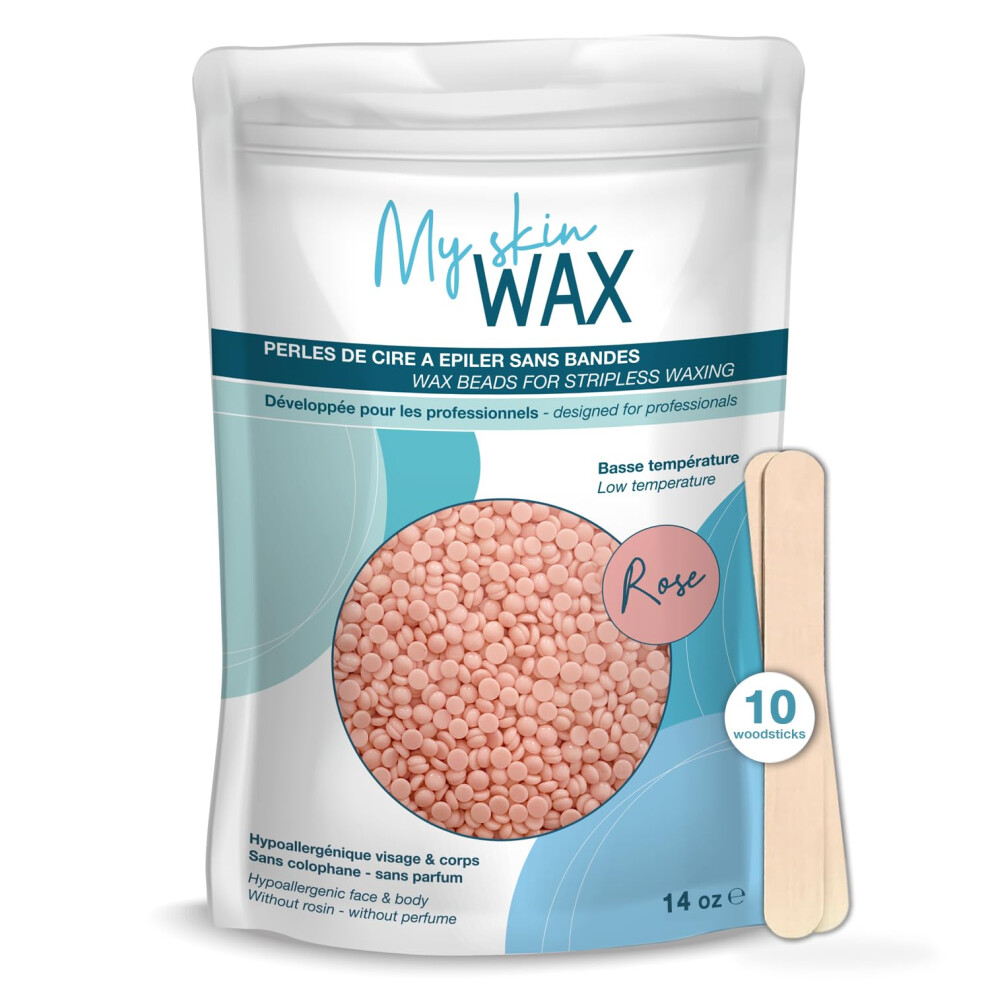 My Skin Wax - Stripless Wax Beads, 400g, Hypoallergenic, Smooth Waxing without Redness, Special for Sensitive Skin Men Women, Peelable, Face, Bikini, Brazilian (Rose)