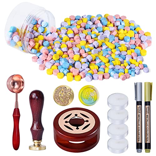 748 PCS Wax Seal Stamp Kit, WEWINK PLUS 720 PCS Wax Sealing Beads Set with Stamp, Warmer and Spoon, 12PCS Tea Candles, 10PCS Envelopes, 2PCS Pen for Invitations, Crafts, DIY, Letter, Gifts, Decor