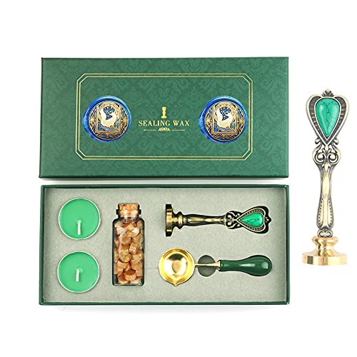 CRASPIRE 300 Pieces Octagon Sealing Wax Beads Sticks with 4 Pieces Tea Candles and 2 Piece Wax Melting Spoon for Wax Stamp Sealing (Green)