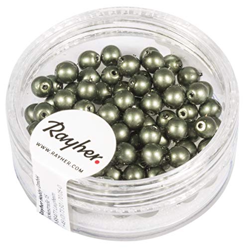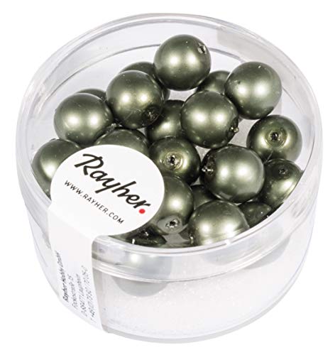 Rayher Hobby 14449458 Renaissance Glass Wax Beads Matt Diameter 10 mm Antique Olive Pack of 35