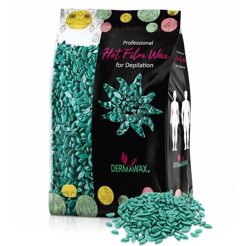 Dermawax 1kg Azulene Wax Beads – Quick Drying Stripless Hard Wax for Sensitive Skin – Effective Hair Removal for Underarms, Bikini, Legs, Arms & Face – Professional Brazilian Waxing, Made in Italy