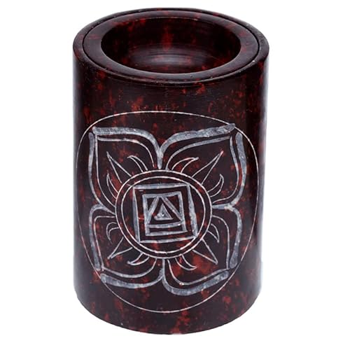 Puckator Deep Red Soapstone Carved Chakra Oil Burner - Wax Melt Burners Warmer - Boho Bedroom Decor Diffuser Scent Tea Light Burner Holder - House Warming Gift - Aromatherapy Set