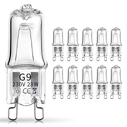 NOTSEK 10 Pack Wax Melt Burners - G9 Halogen Bulbs, 230V 28W, 2700K-3500K Warm White Light, Dimmable for Lamps & Oven