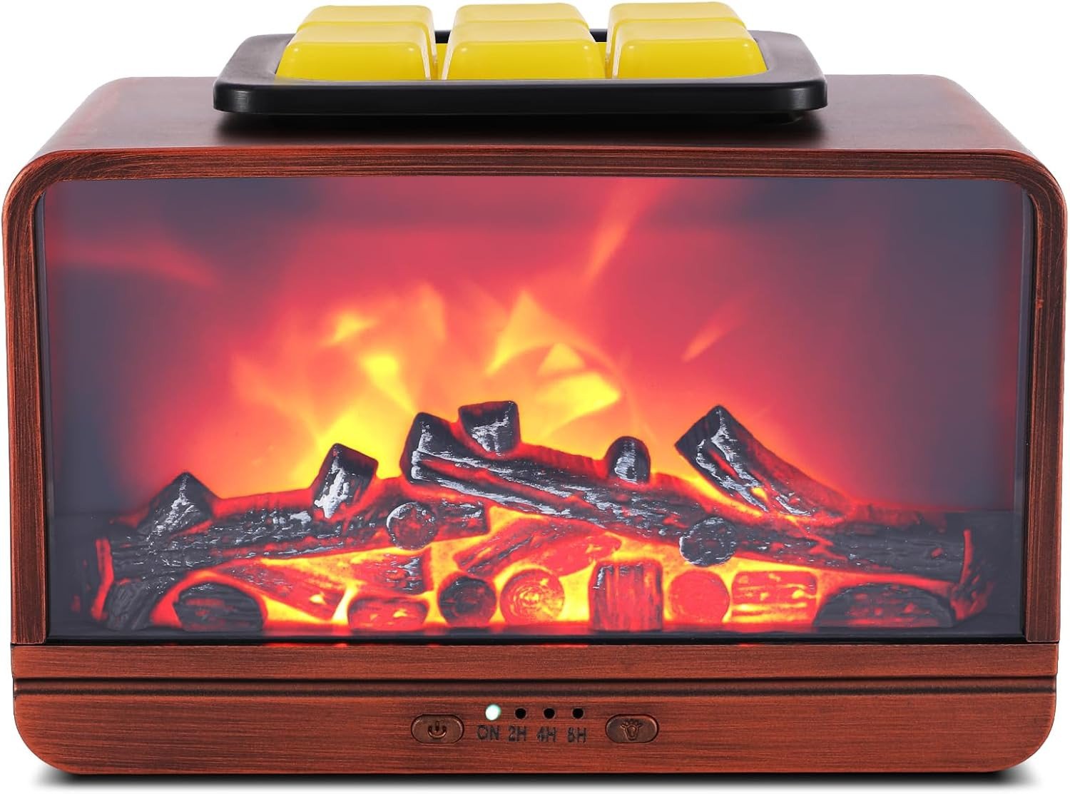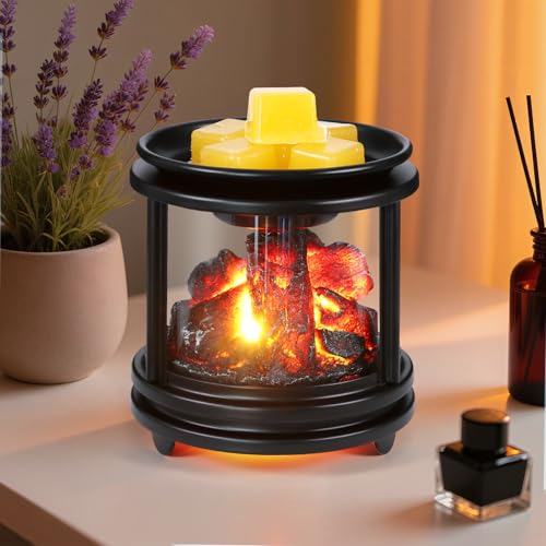 Wowlela Electric Wax Melt Warmer, Dynamic Flame Fireplace Wax Melt Burners with 4 Timer & 3 Brightness,Wax Melter for Scented Wax Cubes or Essential Oil, Fragrance Warmer for Home Office Gifts & Decor