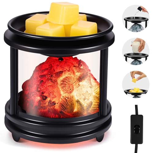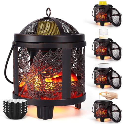 Wax Melt Burners Electric, 4-in-1 Electric Flame Fireplace Wax Oil Burner Electric Wax Melt Warmer Candle Wax Warmer Burner Melter Fragrance Warmer for Scented Wax Cubes/Wax Tarts/Fragrance Oils