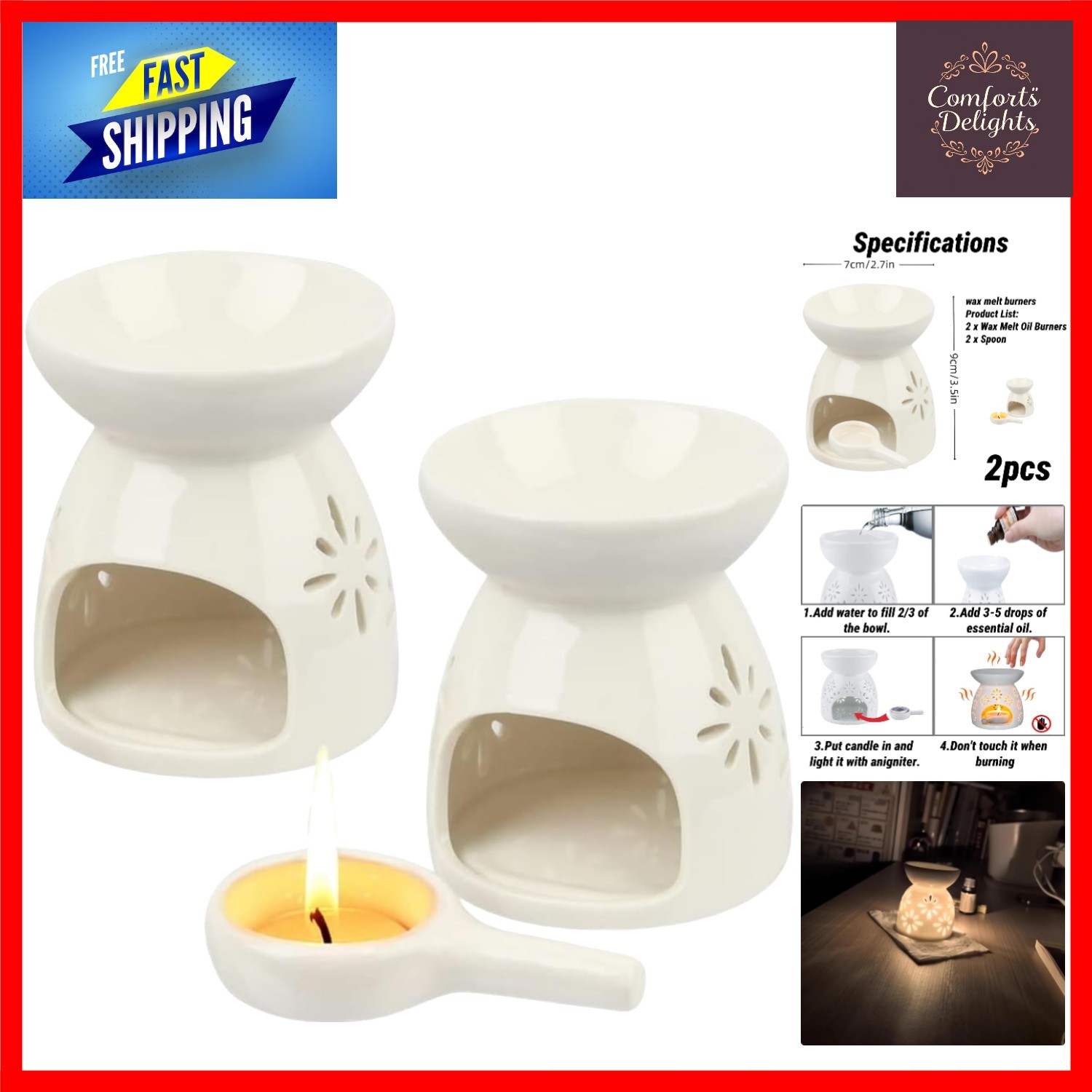 Comsaf Wax Melt Burners Essential Oil Burner Set of 2, Aromatherapy Aroma Burner