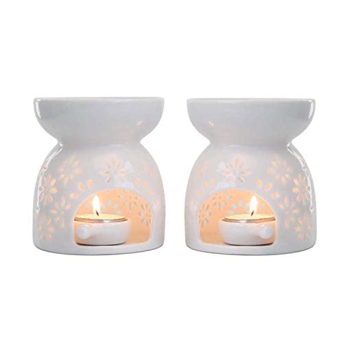 ComSaf Wax Melt Burners Essential Oil Burners Set of 2 - Flower Pattern, Lovely Aromatherapy Aroma Burner Ceramic Lamp Diffuser Candle Tealight Holder Home Bedroom Decor Christmas Housewarming Gift
