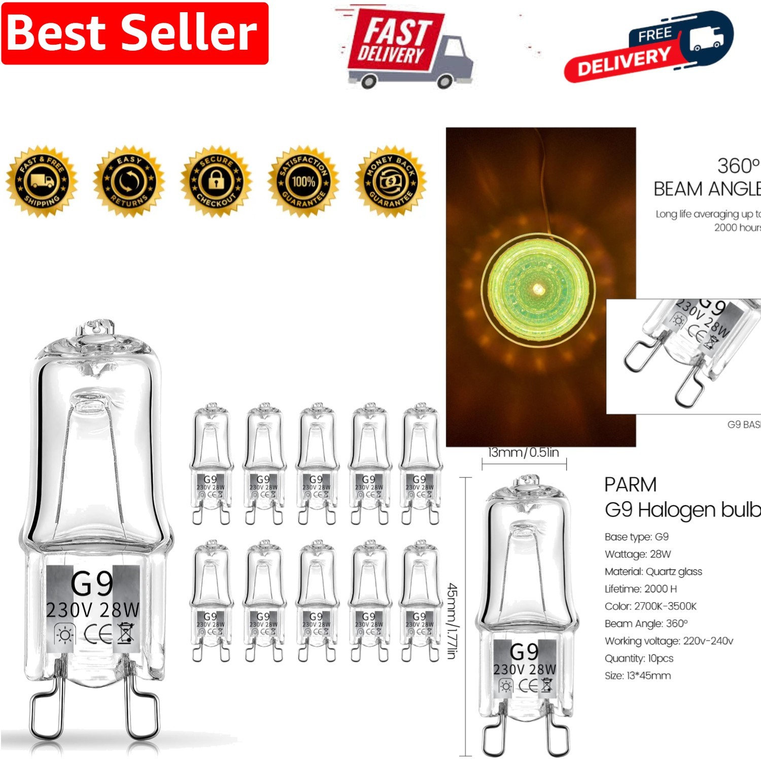 10 Pack Wax Melt Burners - G9 Halogen Bulbs, 230V 28W, 2700K-3500K Warm White...