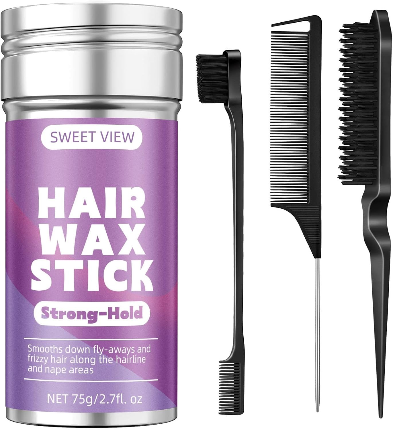 SWEET VIEW Hair Wax Stick & Slick Back Hair Brush for Tame Flyaways, Frizz, Slee