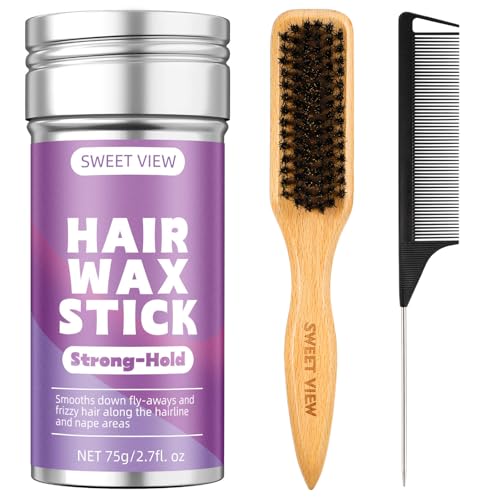SWEET VIEW Hair Wax Stick & Slick Back Brush for Tame Flyaways, Frizz,...